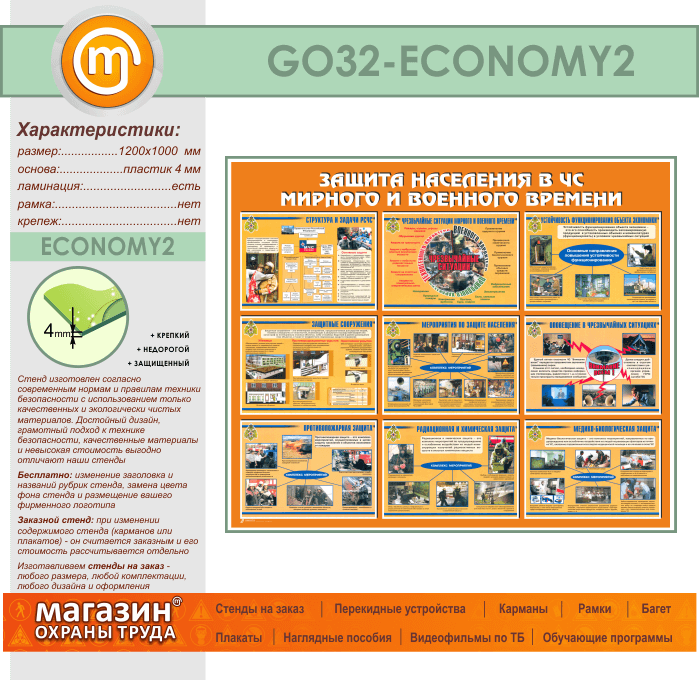 Стенд «Защита населения в ЧС мирного и военного времени» (GO-32-ECONOMY2) в Омске купить