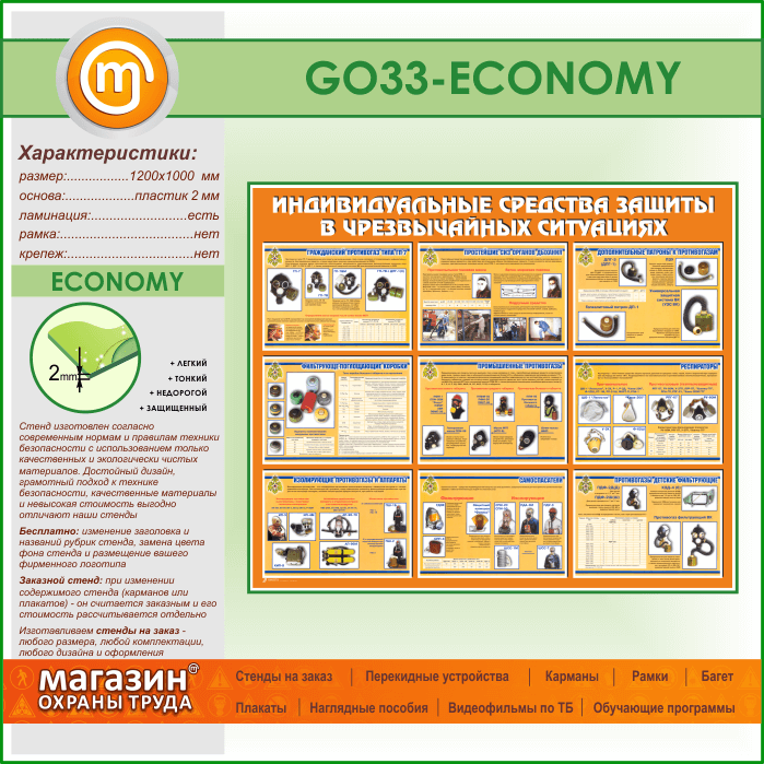 Стенд «Индивидуальные средства защиты в чрезвычайных ситуациях» (GO-33-ECONOMY) в Омске купить