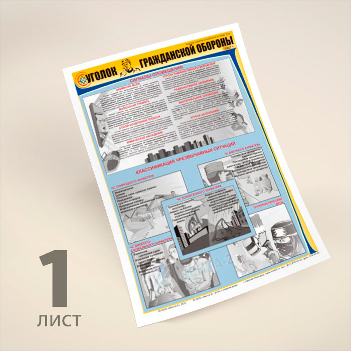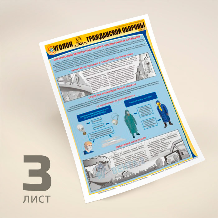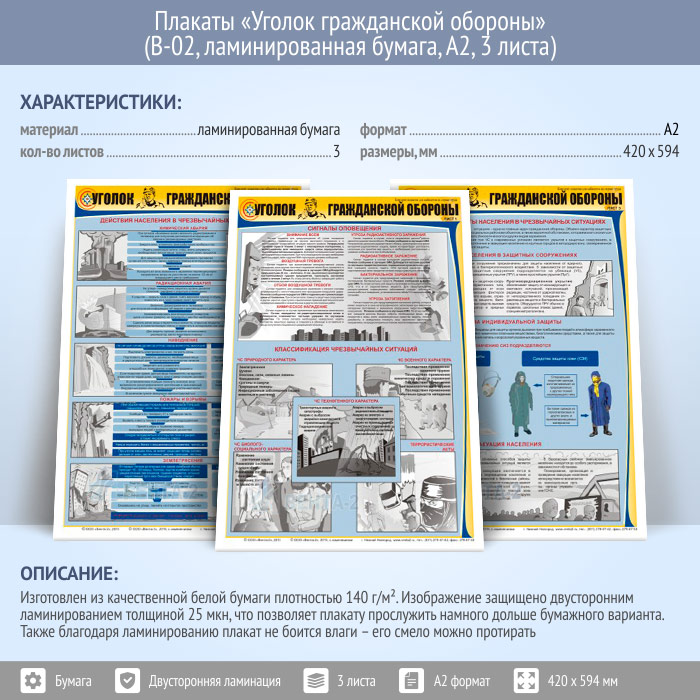 Плакаты «Уголок гражданской обороны» (В-02, ламинированная бумага, А2, 3 листа) в Омске купить