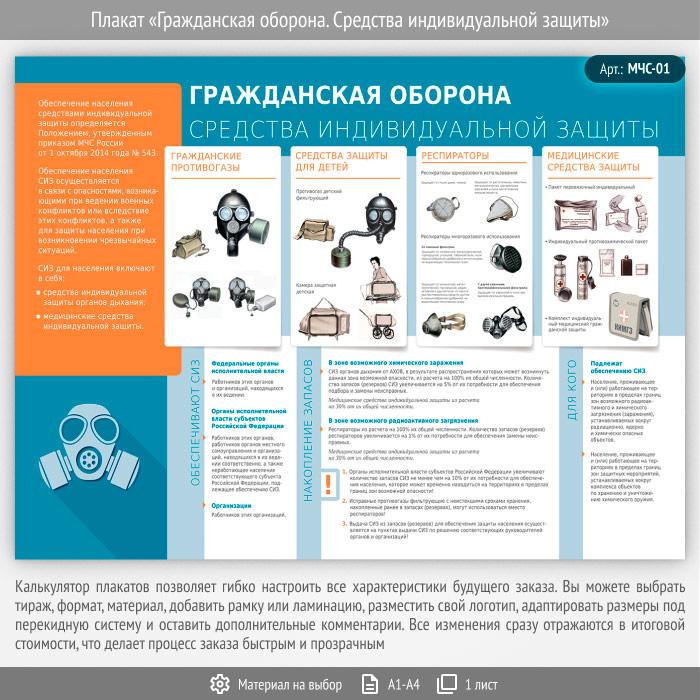 Плакат «Гражданская оборона. Средства индивидуальной защиты» (МЧС-01, 1 лист) в Омске купить