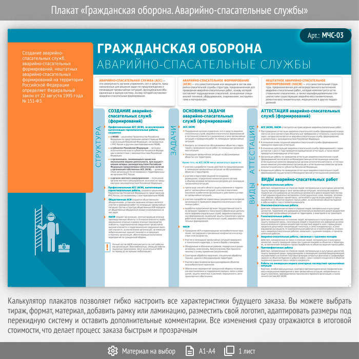 Плакат «Гражданская оборона. Аварийно-спасательные службы» (МЧС-03, 1 лист) в Омске купить