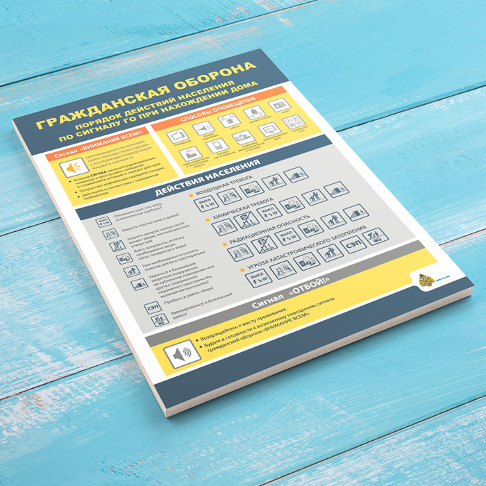 Плакат «Гражданская оборона. Порядок действия населения по сигналу ГО при нахождении дома» (МЧС-04, 1 лист) в Омске купить
