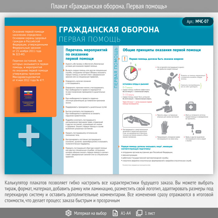 Плакат «Гражданская оборона. Первая помощь» (МЧС-07, 1 лист) в Омске купить