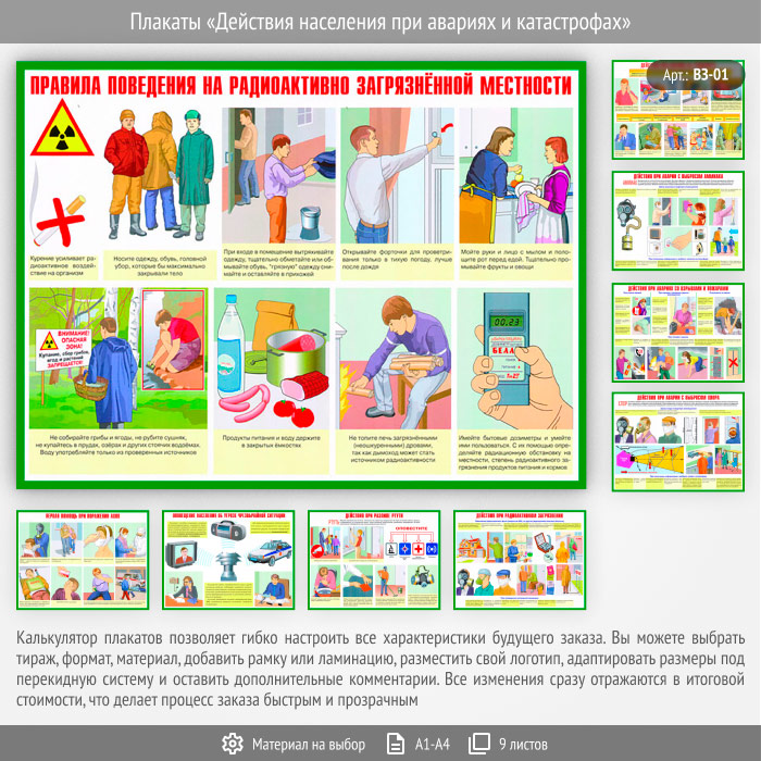 Плакаты «Действия населения при авариях и катастрофах» (ВЗ-01, 9 листов) в Омске купить