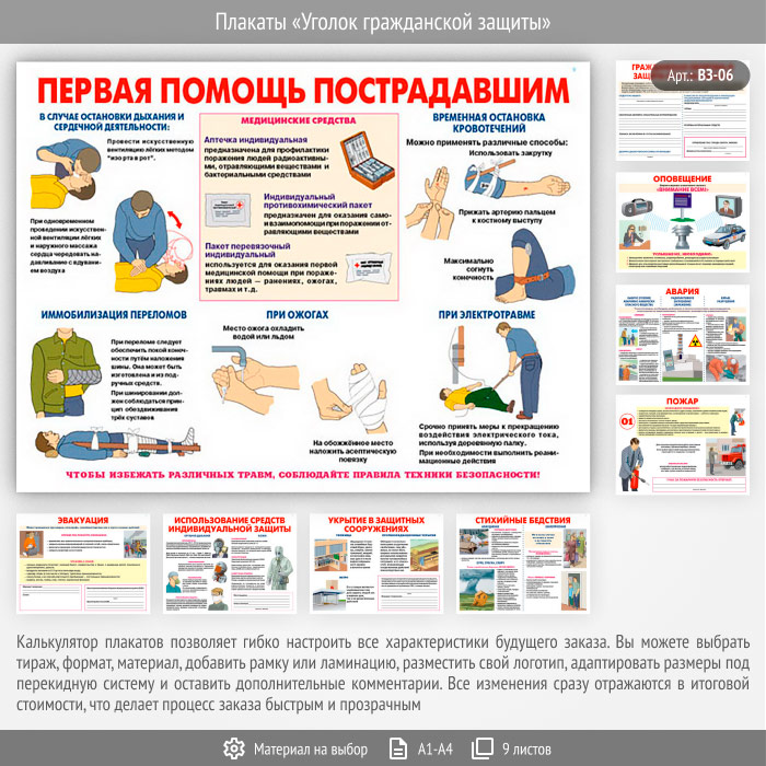 Плакаты «Уголок гражданской защиты» (ВЗ-06, 9 листов) в Омске купить