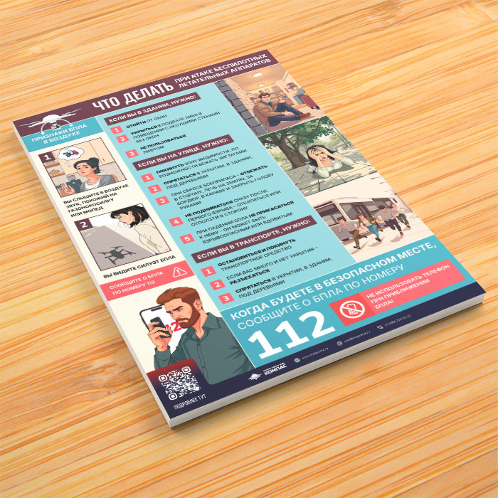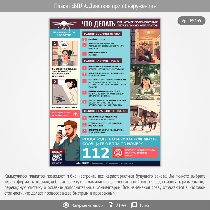 Плакат «БПЛА. Действия при обнаружении» с QR (М-135, 1 лист) в Омске купить