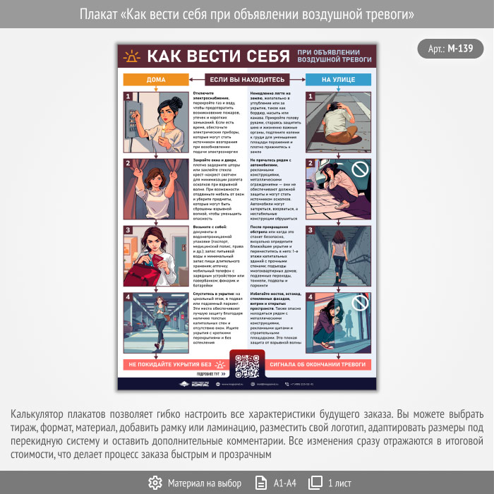 Плакат «Как вести себя при объявлении воздушной тревоги» с QR (М-139, 1 лист) в Омске купить