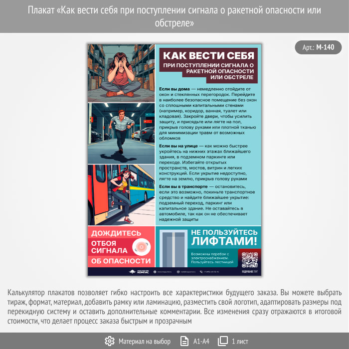 Плакат «Как вести себя при поступлении сигнала о ракетной опасности или обстреле» с QR (М-140, 1 лист) в Омске купить