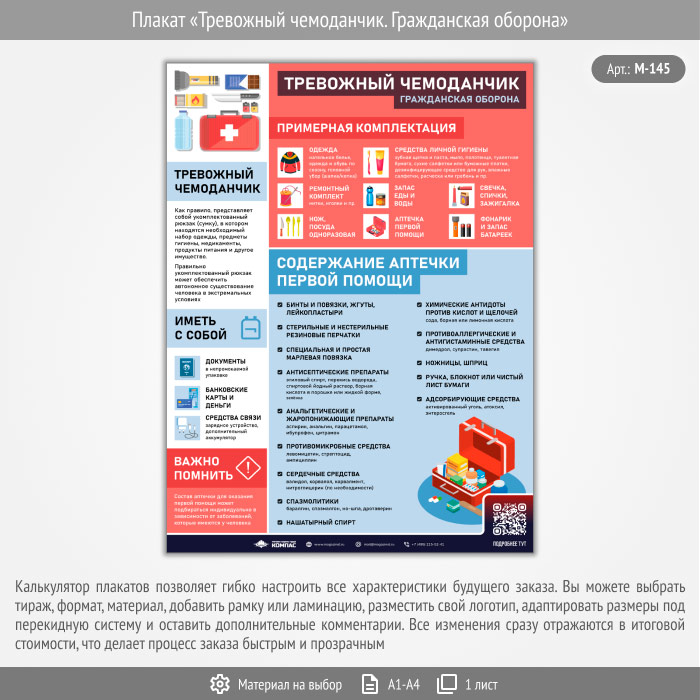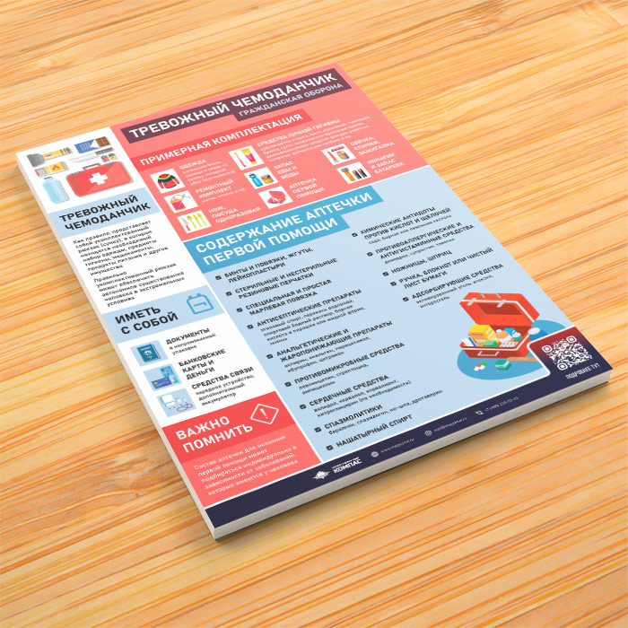 Плакат «Тревожный чемоданчик. Гражданская оборона» с QR (М-145, 1 лист) в Омске купить