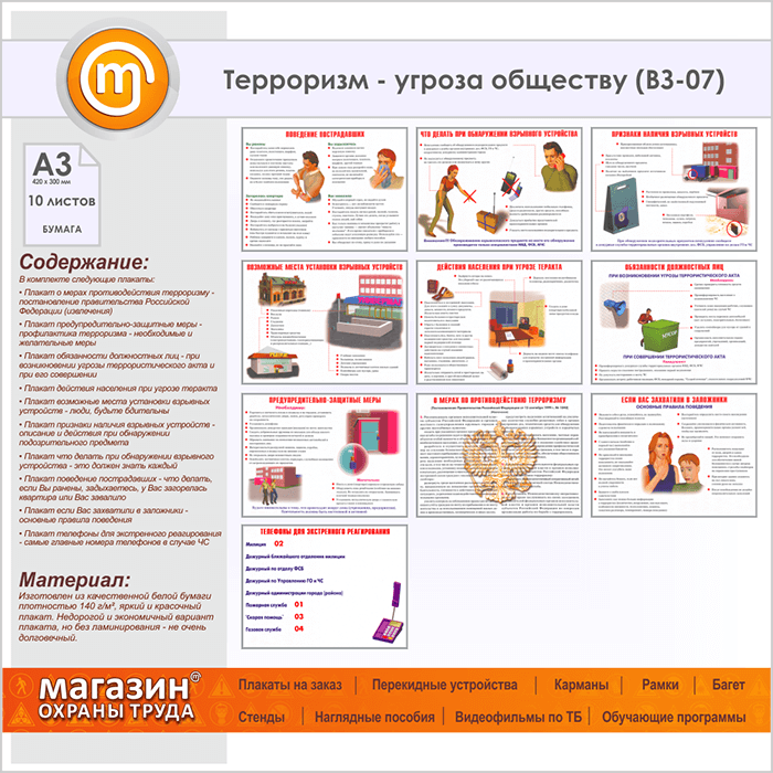Плакаты «Терроризм - угроза обществу» (ВЗ-07, бумага, А3, 10 листов) в Омске купить