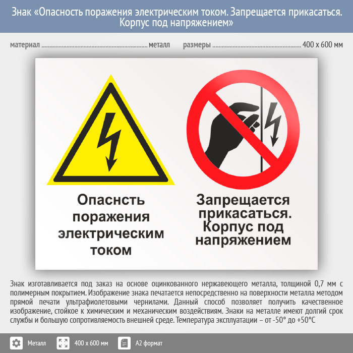 Знак «Опасность поражения электрическим током. Запрещается прикасаться. Корпус под напряжением», КЗ-47 (металл, 600х400 мм) в Омске купить