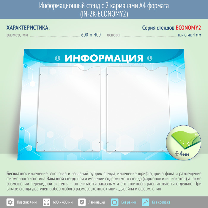 Информационный стенд с 2 карманами А4 формата (IN-2K-ECONOMY2) в Омске купить