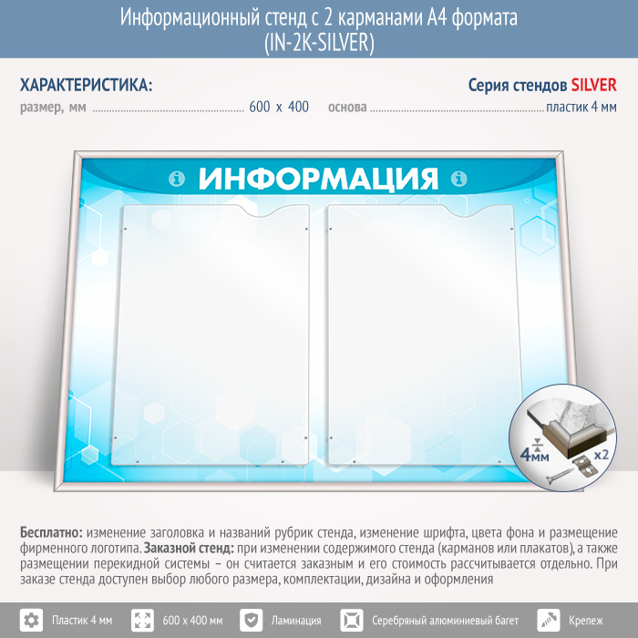 Информационный стенд с 2 карманами А4 формата (IN-2K-SILVER) в Омске купить