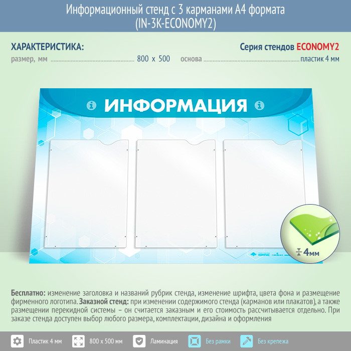 Информационный стенд с 3 карманами А4 формата (IN-3K-ECONOMY2) в Омске купить