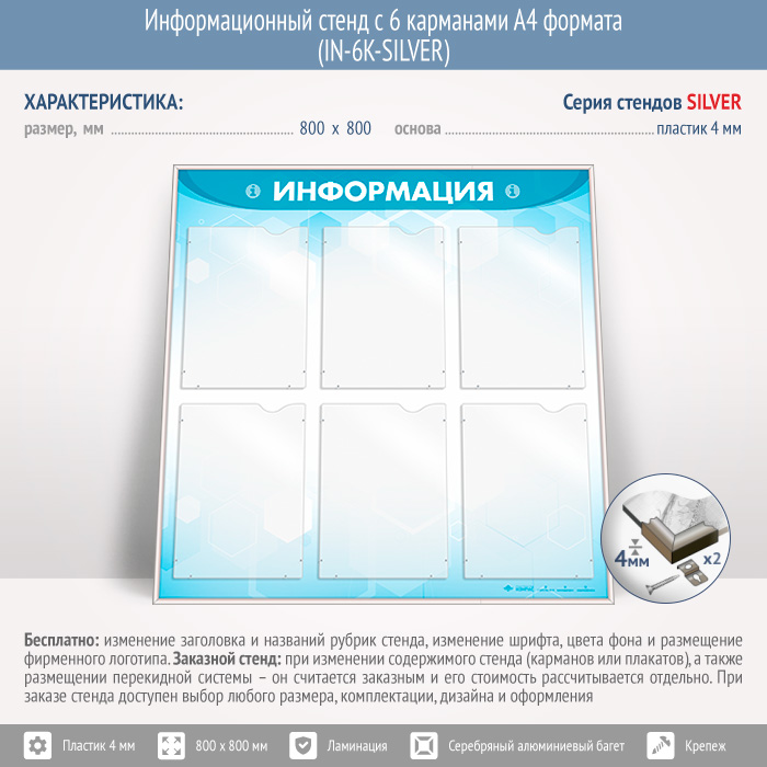 Информационный стенд с 6 карманами А4 формата (IN-6K-SILVER) в Омске купить