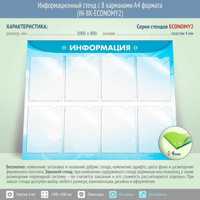 Информационный стенд с 8 карманами А4 формата (IN-8K-ECONOMY2) в Омске купить