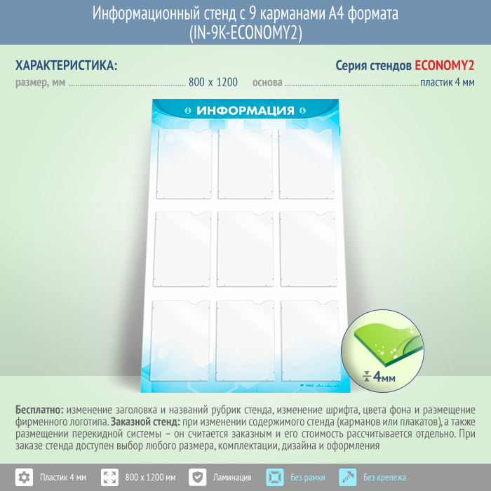 Информационный стенд с 9 карманами А4 формата (IN-9K-ECONOMY2) в Омске купить