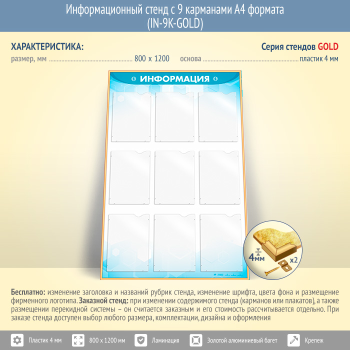 Информационный стенд с 9 карманами А4 формата (IN-9K-GOLD) в Омске купить