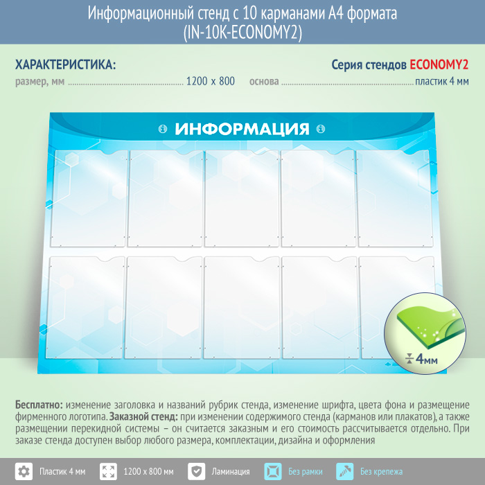 Информационный стенд с 10 карманами А4 формата (IN-10K-ECONOMY2) в Омске купить