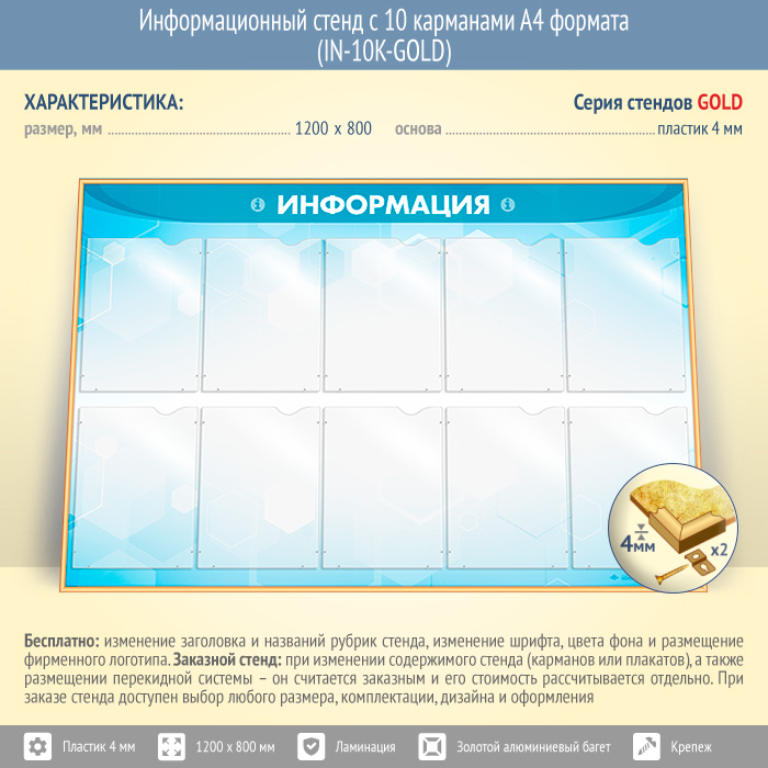 Информационный стенд с 10 карманами А4 формата (IN-10K-GOLD) в Омске купить