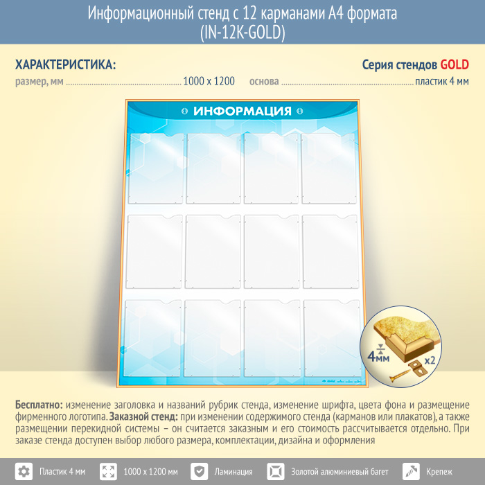 Информационный стенд с 12 карманами А4 формата (IN-12K-GOLD) в Омске купить