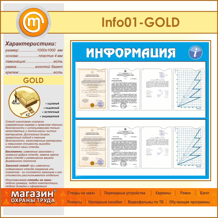 Стенд «Информация» с 8 карманами А4 формата (IN-01-GOLD) в Омске купить