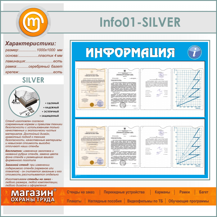 Стенд «Информация» с 8 карманами А4 формата (IN-01-SILVER) в Омске купить
