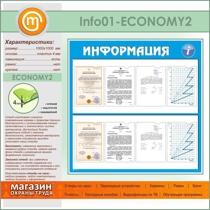 Стенд «Информация» с 8 карманами А4 формата (IN-01-ECONOMY2) в Омске купить