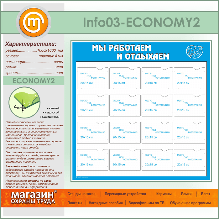 Стенд «Мы работаем и отдыхаем» с 16 карманами А5 формата (IN-03-ECONOMY2) в Омске купить