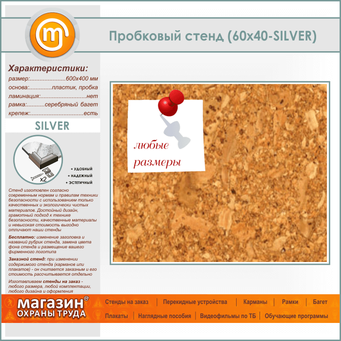 Пробковая доска, 60х40 см (IN-05-SILVER) в Омске купить