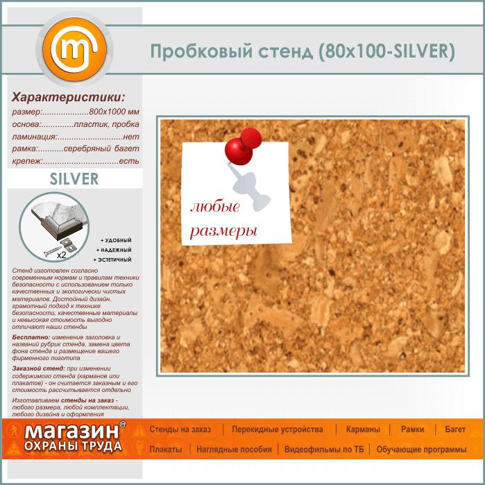Пробковая доска, 100х80 см (IN-05-SILVER) в Омске купить