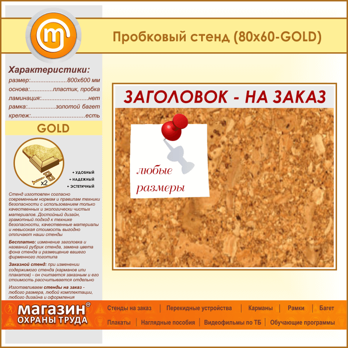 Пробковая доска с заголовком, 80х60 см (IN-06-GOLD) в Омске купить