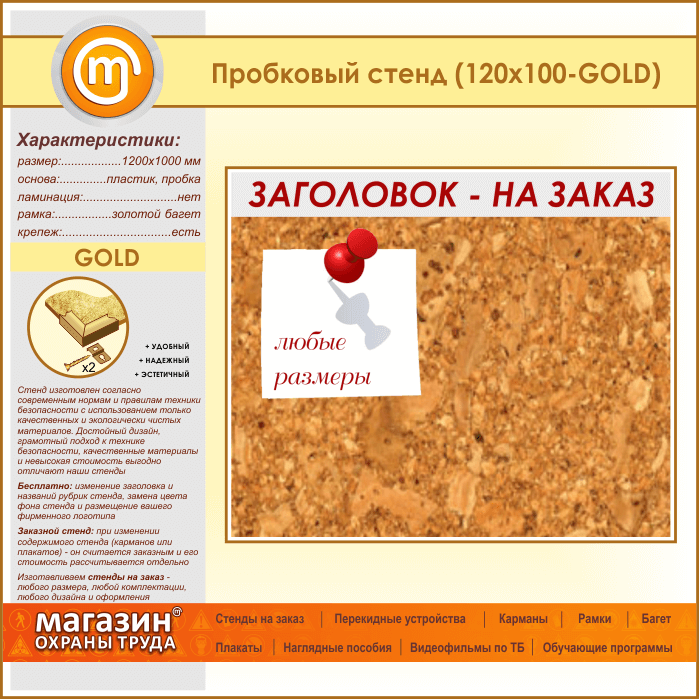 Пробковая доска с заголовком, 120х100 см (IN-06-GOLD) в Омске купить