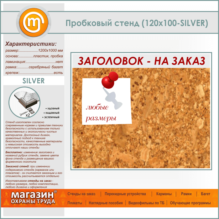 Пробковая доска с заголовком, 120х100 см (IN-06-SILVER) в Омске купить