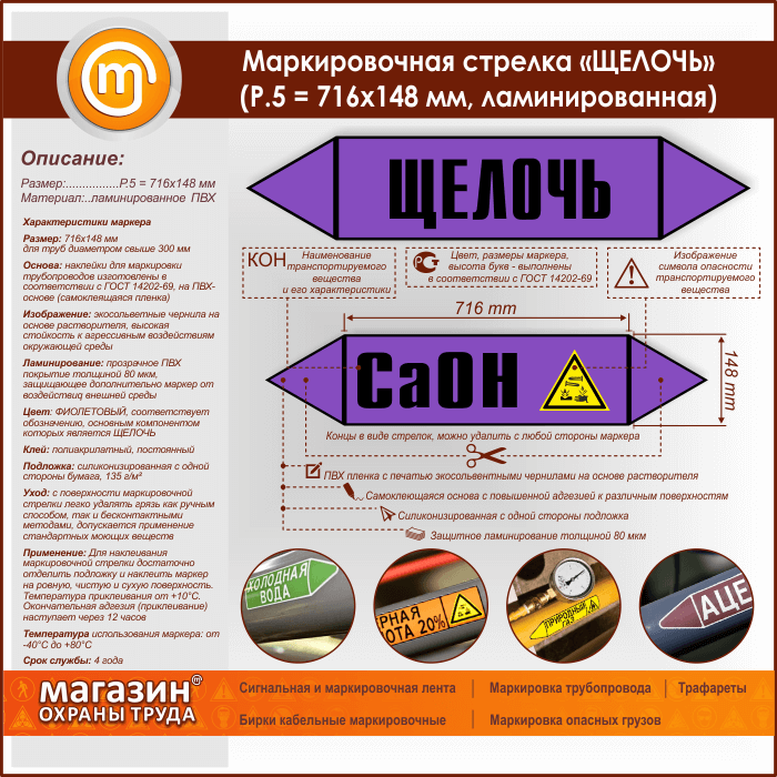 Маркировочная стрелка «ЩЕЛОЧЬ» (P.5 = 716х148 мм, самоклеящаяся плёнка с ламинированием) в Омске купить