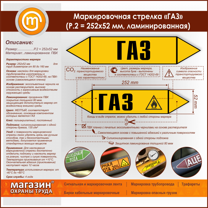 Маркировочная стрелка «ГАЗ» (P.2 = 252х52 мм, самоклеящаяся плёнка с ламинированием) в Омске купить