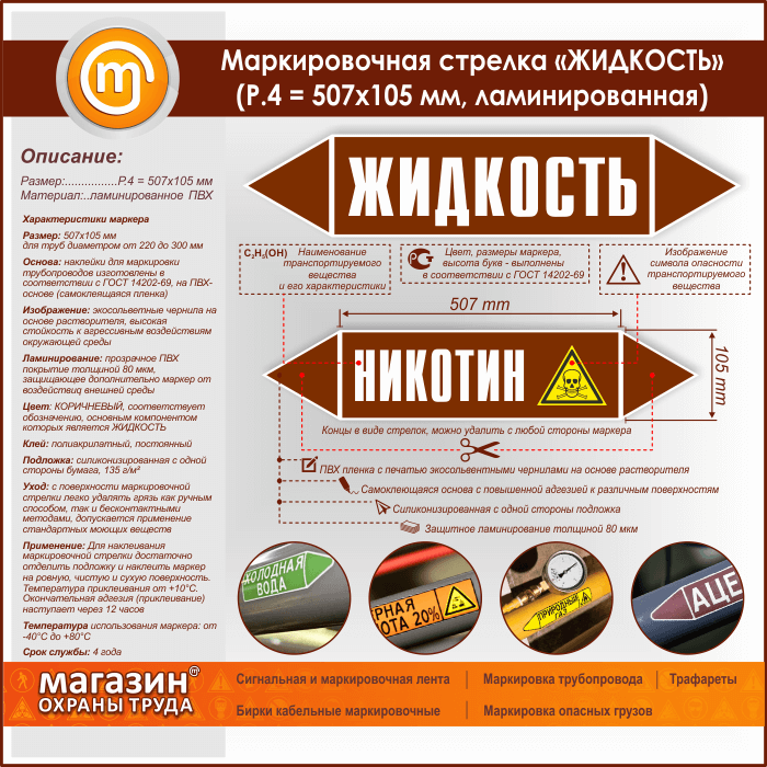 Маркировочная стрелка «ЖИДКОСТЬ»(P.4 = 507х105 мм, самоклеящаяся плёнка с ламинированием) в Омске купить