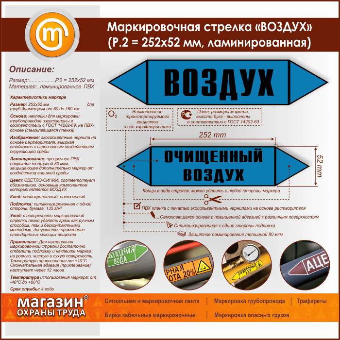 Маркировочная стрелка «ВОЗДУХ» (P.2 = 252х52 мм, самоклеящаяся плёнка с ламинированием) в Омске купить