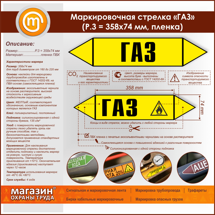 Маркировочная стрелка «ГАЗ» (P.3 = 358х74 мм, самоклеящаяся плёнка) в Омске купить