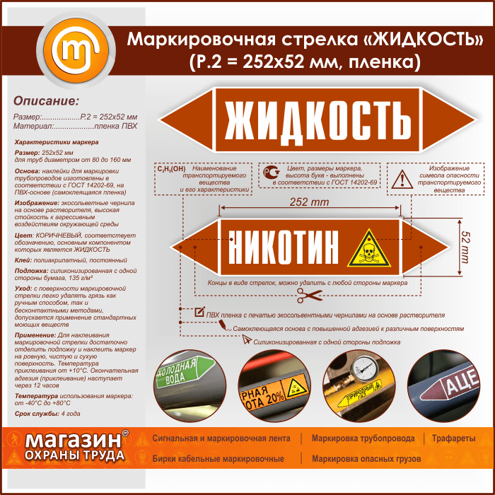 Маркировочная стрелка «ЖИДКОСТЬ» (P.2 = 252х52 мм, самоклеящаяся плёнка) в Омске купить