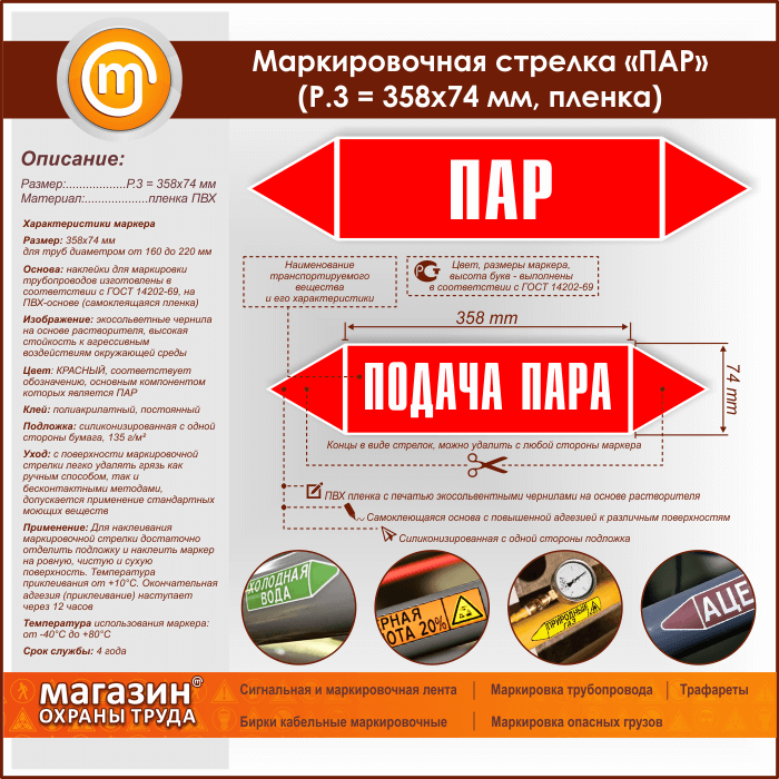Маркировочная стрелка «ПАР» (P.3 = 358х74 мм, самоклеящаяся плёнка) в Омске купить