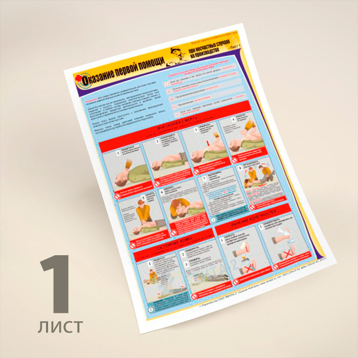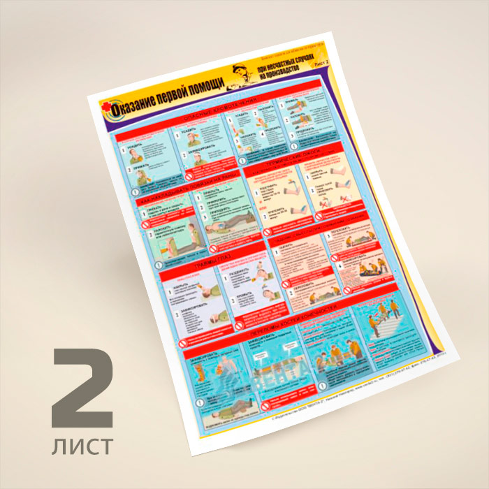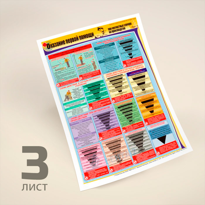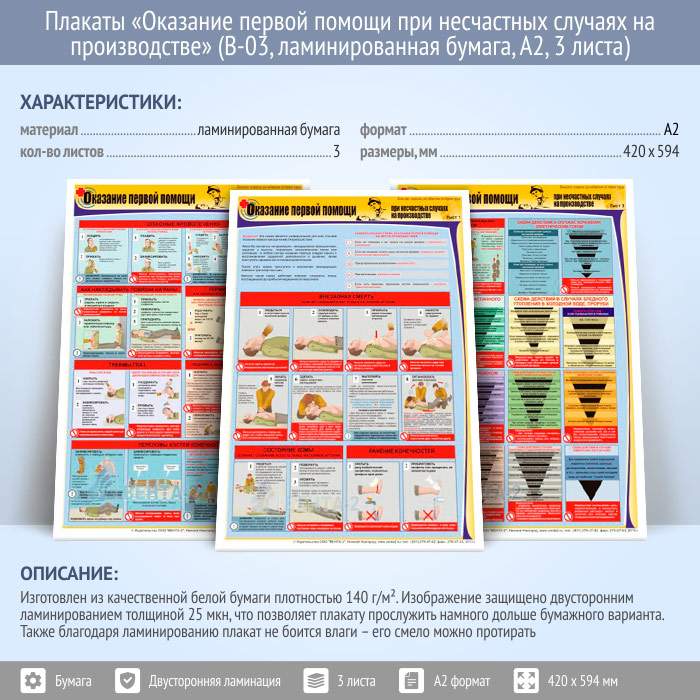 Плакаты «Оказание первой помощи при несчастных случаях на производстве» (В-03, ламинированная бумага, А2, 3 листа) в Омске купить