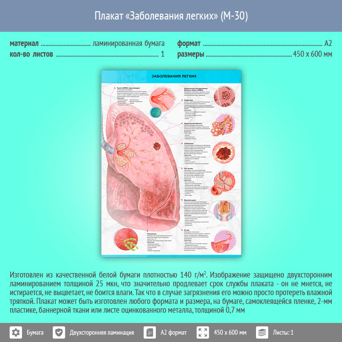 Плакат «Заболевания легких» (М-30, ламинированная бумага, А2, 1 лист) в Омске купить