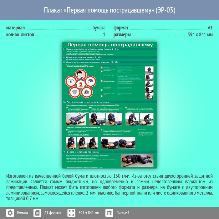 Плакат «Первая помощь пострадавшему» (ЭР-03, бумага, А1, 1 лист) в Омске купить