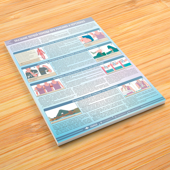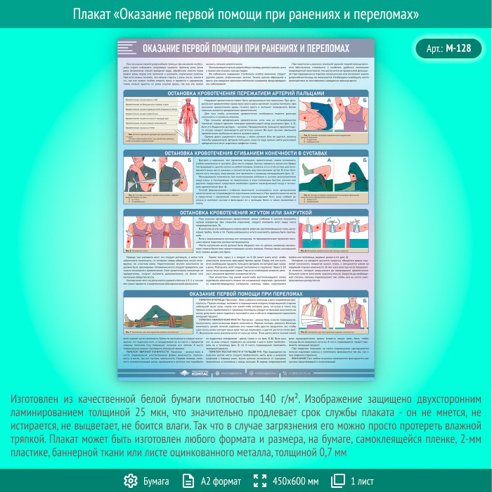 Плакат «Оказание первой помощи при ранениях и переломах» (М-128, ламинированная бумага, А2, 1 лист) в Омске купить