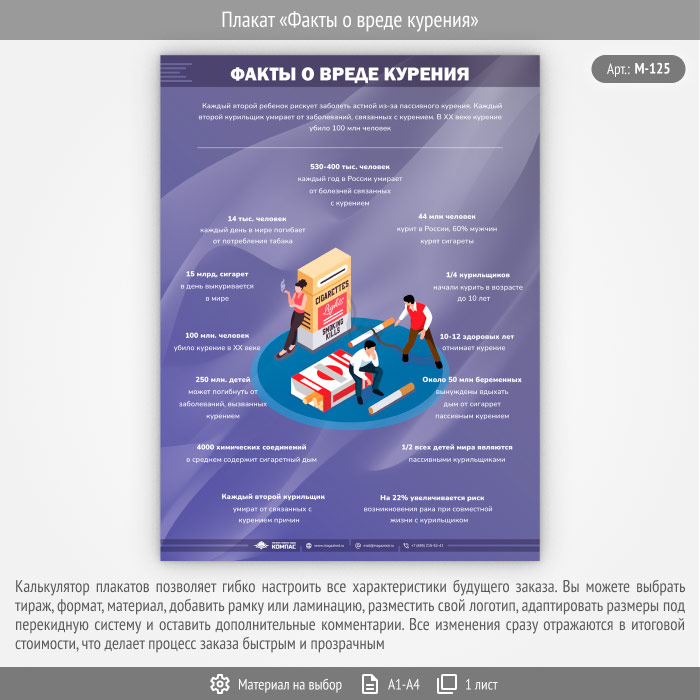 Плакат «Факты о вреде курения» (М-125, 1 лист) в Омске купить