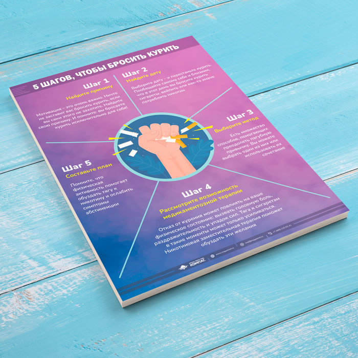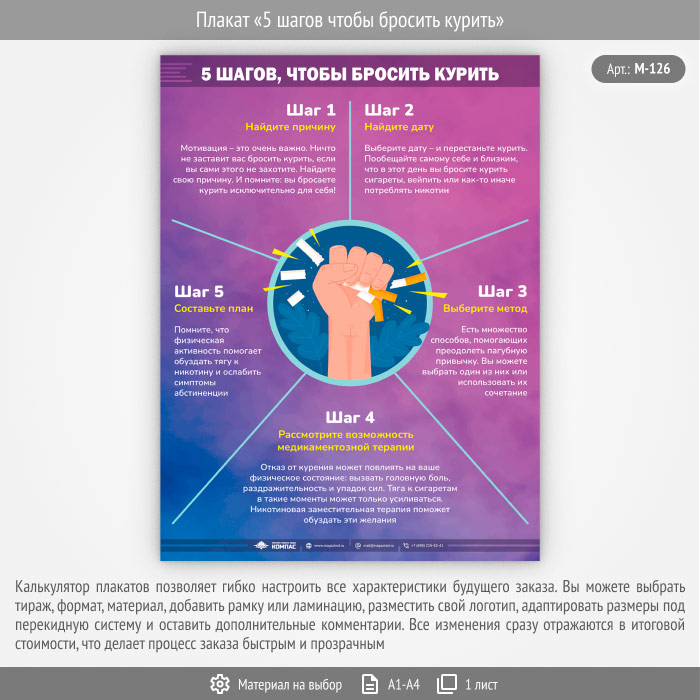 Плакат «5 шагов чтобы бросить курить» (М-126, 1 лист) в Омске купить
