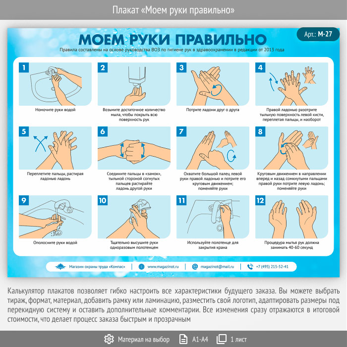 Плакат «Моем руки правильно» (М-27, 1 лист) в Омске купить