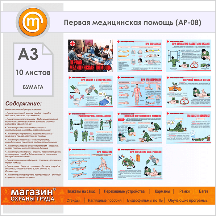Плакаты «Первая медицинская помощь» (АР-08, бумага, А3, 10 листов) в Омске купить
