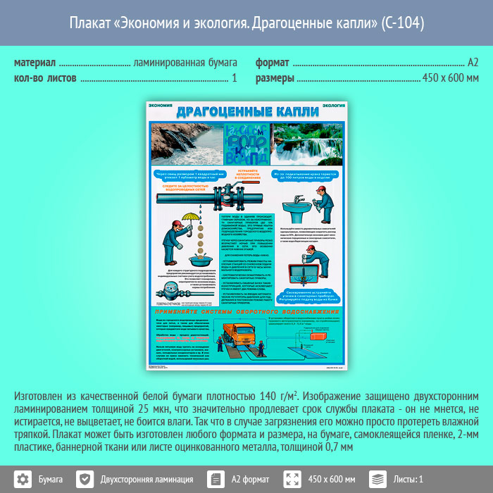 Плакат «Экономия и экология. Драгоценные капли» (С-104, ламинированная бумага, А2, 1 лист) в Омске купить